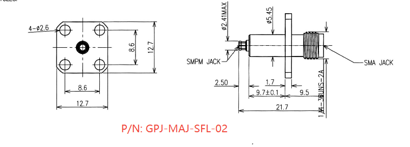 The SMA Female to Mini SMP (SMPM/GPPO) Female 4 Hole Flange Adapter, 21.7mm, 6GHZ Adapter is perfect for interconnection of coaxial components or sub-systems connection. This 50 ohm adapter has a straight body. Our SMA Female to Mini SMP (SMPM/GPPO) Female Stainless Steel Adapter Stainless Steel Adapter is cost-effetive for use. ZOMWAVE adapter has excellent VSWR performance with frequency up to 6GHz