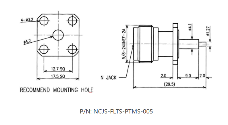 5 Days Ship Out. Negotiated Prcie. ZOMWAVE N Type Female Waterproof Terminal Connector, 4 hole Flange, Extended 9mm Insulator and 2mm Pin connector has an interface type of stub terminal and a 50 Ohm impedance.Type N female connector uses shield/contact solder as an attachment method. Our female Type N pcb connector provides a minimum frequency of DC and a maximum frequency of 11GHz. ZOMWAVE Type N female pcb connector has a PEI dielectric type and a VSWR of 1.25. The ZOMWAVE N Type Female Waterproof Terminal Connector, 4 hole Flange, Extended 9mm Insulator and 2mm Pin connector has stainless steel body. Our Type N connector uses beryllium copper contact. ThisType N connector is RoHS and REACH compliant. Our Type N connector is part of over 40,000 RF, microwave and millimeter wave components in stock for worldwide shipment. ZOMWAVE supplies Type N connector .